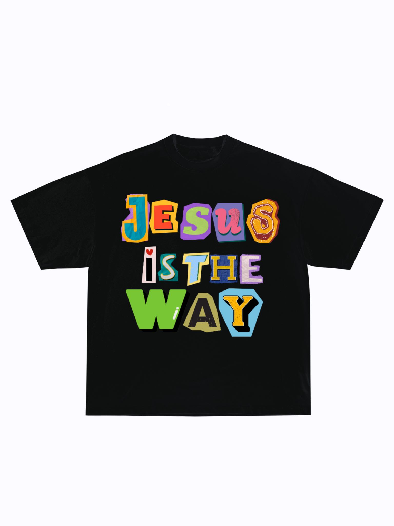 Make a powerful statement of faith with our “Jesus Is The Way” graphic t-shirt. Designed with vibrant, colorful, ransom-style letters, this eye-catching tee combines streetwear flair with a strong spiritual message. The bold lettering stands out against a classic black background, making it the perfect piece for everyday wear, church events, youth groups, or outreach.